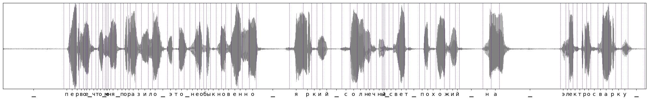 alignment_durations, _, tokenized_text_tokens = extractor.extract_alignment("sample0.wav", ru_transcription, plot=True, add_trailing_silence=True)
